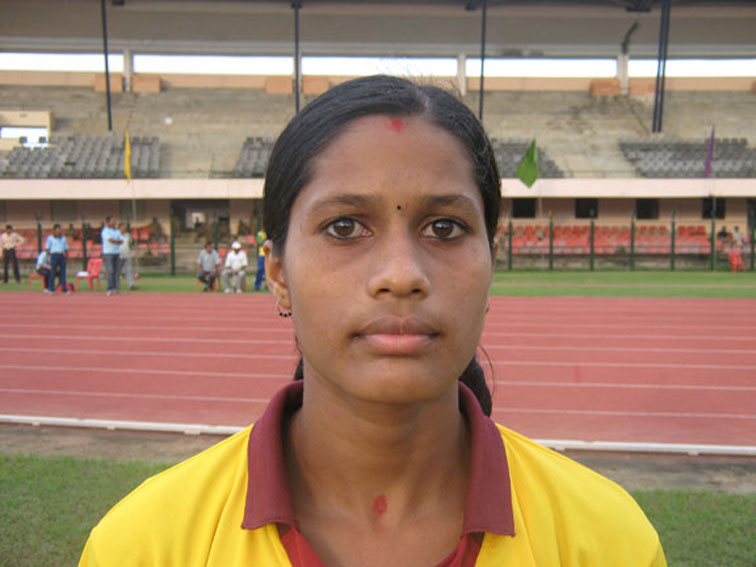 Bottom: Orissa’s Puspanjali Mallick after bagging gold medal in girls-18 100 metre sprint today