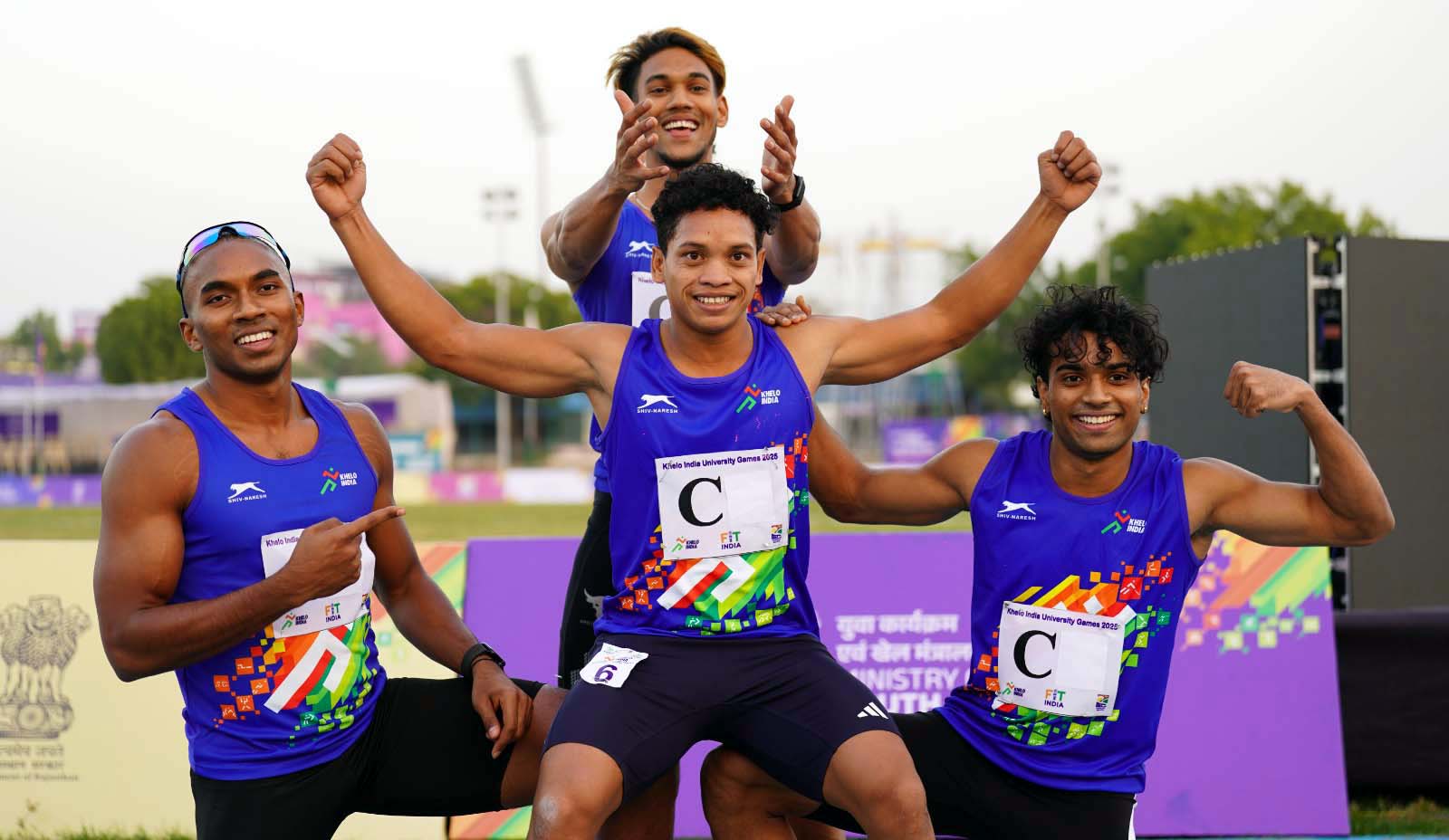KIIT mens 4×100m relay team, consisting of Olympian Animesh Kujur, along with Abhay Singh, Dondapati Mrutyam Jayaram and Mahendra Santa, put up another record-breaking effort to win gold with a time of 40.09 seconds.