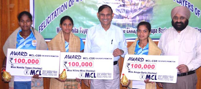 Mahanadi Coalfields Limited (MCL) today felicitated four woman hockey players of Odisha for helping India win the bronze medal in the Junior Women Hockey World Cup last year in Germany.Read More..