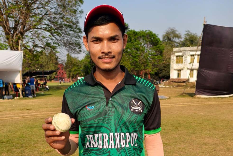 RIGHT: Nabarangpur bowler Sukesh Heera poses after bagging five wickets in their Kalahandi Cup match against Kendrapara in Cuttack on 17 February 2026.