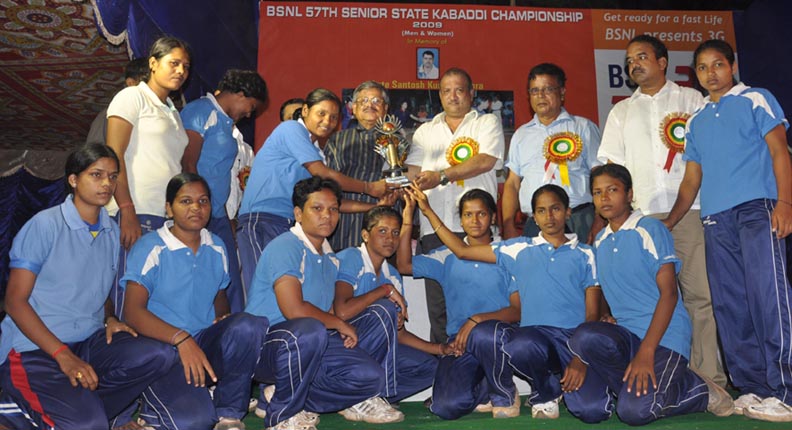 Bottom: Women’s champion Khurda team receives the trophy at the State Kabaddi Championship in Bhubaneswar on May 30, 2009.