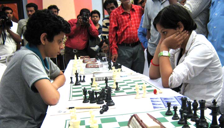 Bottaom: Orissa WIM Padmini Rout faces state junior opponent Sunyasakta Satpathy in the fifth round in Bhubaneswar today.
