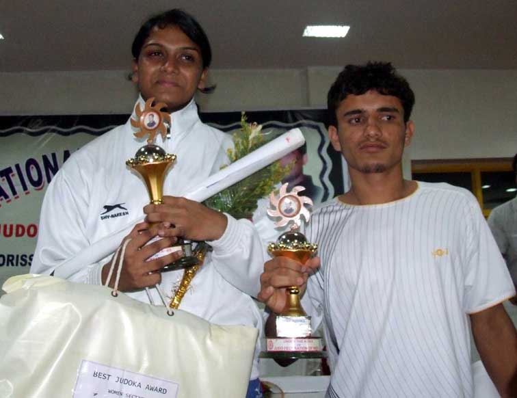 BOTTOM: Sara Majid (Left) and Anup pose with the best judoka prizes in Bhubaneswar on on Oct 3, 2009.