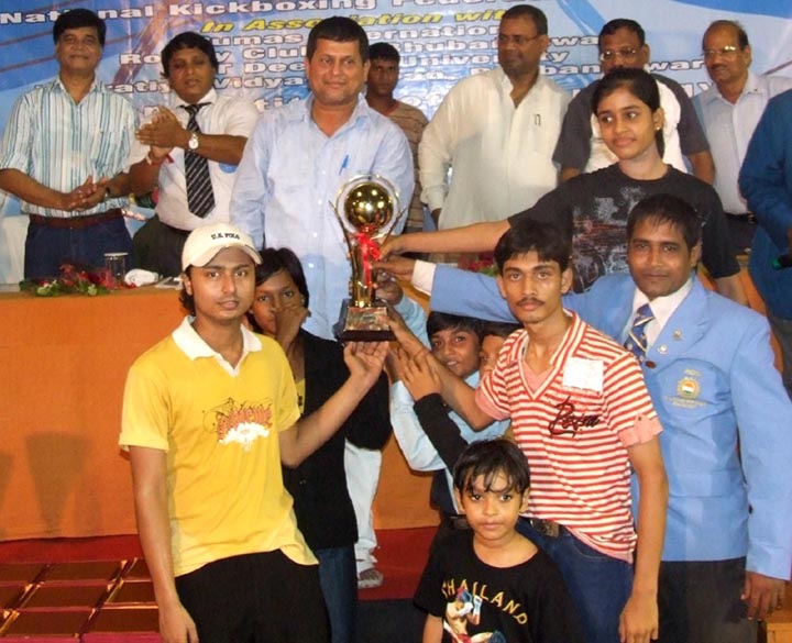 TOP: Orissa senior team lifts trophy at the National Kickboxing Championship in Bhubaneswar on Oct 4, 2009.