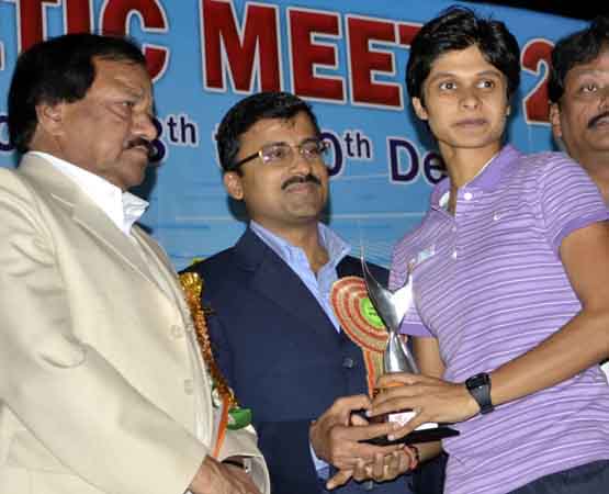 GIRLS-14: 600m run: Manisha Swati Minz (Bhub, 1:51.7s); Long jump: Namita Bala Singh (Bhub, 4.92m, *NMR); Shot put: Karmela Barla (Sund, 6.85m); Triathlon: Madhuchhanda Mishra (Cut, 1211 pts); 100m sprint: Madhuchhanda Mishra (Cut, 13.6s); High jump: Arpita Pradhan (Phu, 1.25m). GIRLS-16: 200m sprint: Reema Mohanty (Bhub, 28.0s). Javelin: Rinu Nayak (Cut, 24.16m); 400m sprint: Reem Mohanty (Bhub, 1:03.7s); 100m hurdles: Jhumuri Lenka (Bhub, 20.0s); 3,000m walk: Minati Xalxo (Sund, 19:49.5s); Long jump: Sekunta Kullu (Bhub, 5.48m); Shot put: Sukanti Soren (Keon, 7.78m); Discus: B Saini Ambika (Jhar, 26.96m); 100m sprint: Sekunta Kullu (Bhub, 12.8s); 1,000m run: Jhilli Barik (Jhar, 3:24.8s, *NMR); 3,000m run: Anjana Tirkey (Sund, 12:06.0s); 100m hurdles: Jhumuri Lenka (Bhub, 20.0s); High jump: Jasmani Burh (Sund, 1.33m); Pentathlon: Kishori Lakra (Bhub, 1853pts). GIRLS-18: 800m run: Mousumi Lakra (Sund, 2:33.8s). Javelin: Damayanti Murmu (Bhub, 35.92); 400m sprint: Susma Toppo (Bhub, 1:02.9s); 1500m run: Samsad Ara Begum (Jaga, 5:03.2s); 100m hurdles: Rajeswari Bhoi (Sund, 15.8s); 5,000m walk: Suman Jena (Ang, 29:40.9s); Long jump: Surasmita Bagar (Bar, 4.76m); Shot put: Karishma Panda (Samb, 7.24m); Discus: Kuni Goud (Kala, 24.74m); 100m sprint: Dutee Chand (Jajpur, 12.2s); 200m sprint: Dutee Chand (24.9s, *NMR); 3,000m run: Samsad Ara Begum (Jaga, 10:56.4s); 400m hurdles: Susma Toppo (Bhub, 1:09.3s); High jump: Latika Basra (Bhub, 1.54m, *NMR); Triple jump: Latika Basra (11.29m *NMR); Hammer: Radhika Jena (Puri, 16.40m); Heptathlon: Rajeswari Bhoi (Sund, 3510pts *NMR). GIRLS-20: 200m sprint: Puspanjali Mallik (Bala, 25.8s). 800m run: Anjali Sardar (Sund, 2:28.4s). 5,000m run: Sabita Mohanta (Keon, 22:37.4s). High jump: Swarupa Bagar (Bar, 1.48m). Javelin: Suman Xalxo (Sund, 28.15m); 400m sprint: Anjali Sardar (Sund, 1:03.2s); 1500m run: Susmita Kullu (Sund, 5:05.5s); 100m hurdles: Madhusmita Giri (Bala, 18.3s); 10,000m walk: Sarojini Mallick (Cut, 1h:10:05s), Long jump: Bonita Lakra (Sund, 5.04m); Shot put: Suman Xalxo (Sund, 7.93m); Discus: Dharitri Sahoo (Puri, 24.67m); Hammer: Lipika Mohanty (Cut, 20.33m); 100m sprint: Puspanjali Mallik (Bala, 12.4s); 3,000m run: Susmita Kullu (Sund, 11:07.8s); 2,000m steeple chase: Sasmita Sethi (Cut, 9:11.96s); 400m hurdles: Madhusmita Giri (Bala, 1:11.3s); Triple jump: Alpana Minz (Sund, 9.27m); Heptathlon: Alpana Minz (2455pts). WOMEN: 100m sprint: Srabani Nanda (Bhub, 11.9s *NMR); 200m sprint: Srabani Nanda (24.3 *NSR); 800m run: Sukumati Laguri (OP, 2:17.9s). 5,000m run: Sobha Nayak (Jaj, 19:27.1s). Javelin: Minati Nayak (Keon, 28.78m); 400m sprint: Saraswati Chand (OP, 1:05.9s); 100m hurdles: Rupashree Pothal (Cut, 16.9s); 20,000m walk: Pratima Nayak (Cut, 2h:25.3s); Long jump: Pradosha Pattanaik (Dhen, 4.29m); Shot put: Arpasini Gamango (KIIT, 7.00m); Discus: Aparna Maheswari Pani (Dhen, 26.12m); 1,500m run: Sukumati Laguri (OP, 4:51.1s); 3,000m steeple chase: Padmini Das (Cut, 13:45.45s); 400m hurdles: Rupashree Pothal (1:12.7s); 20km walk: Pratima Nayak (Cut, 2:25.3s); Triple jump: Kaushalya Behera (Cut, 9.24m); Hammer: Laxmipriya Sahoo (Dhen, 27.45m). ------------------------------------------------------ PHOTOS -------------------------------------------------------------------- TOP: Cuttack athletes celebrate after emerging overall champions on Dec 30, 2011. BOTTOM: Srabani Nanda (R) receives a prize for new meet record on Dec 30, 2011.