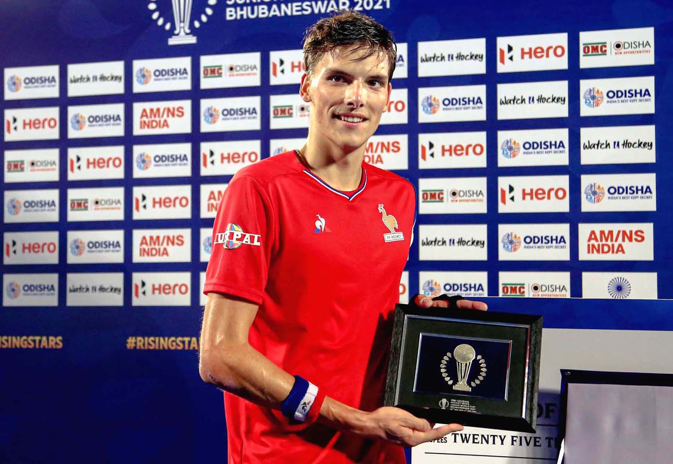 TOURNAMENT AWARDS: Best Player of the Tournament: TimothEe Clement (FRA). Best Goalkeeper of the Tournament: Anton Brinckman (GER). Top Scorer of the Tournament: Miles Bukkens (NED). Fair Play Award: Team Chile. Best Goal of the Tournament: Ignacio Nardolillo (ARG). Maximum Team Goals: Netherlands (45 goals). Best Goal Saved of the Tournament: Mahmoud Seleem (EGY). Best Coach of the Tournament: Johannes Schmitz (GER). ---------------------------------------------------------------------------------- PICS ---------------------------------------------------------------------------------- TOP: Argentina team celebrates with the Junior Men Hockey World Cup trophy in Bhubaneswar on 5 December 2021. RIGHT: France captain and Player of the Tournament Timothee Clement with the Player of the Match memento after their brone medal match against India in Bhubaneswar on 5 December 2021.