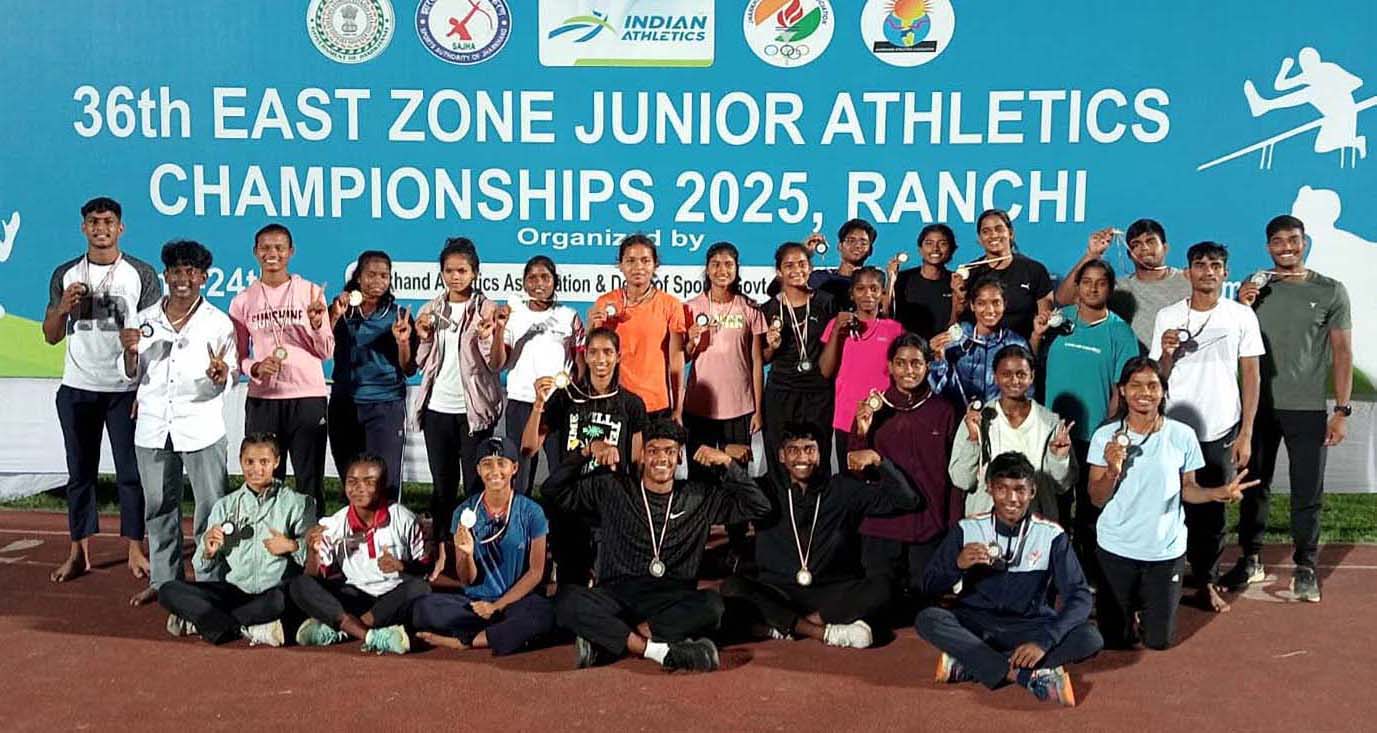A 67-member Odisha squad, featuring 37 boys and 30 girls, bagged a total of 50 medals in the 36th East Zone Junior Athletics Championships, which was held at Morabadi Football Stadium in Ranchi from 22 to 24th September 2025. The 50 medals consisted of 21 gold, 16 silver and 13 bronze.
