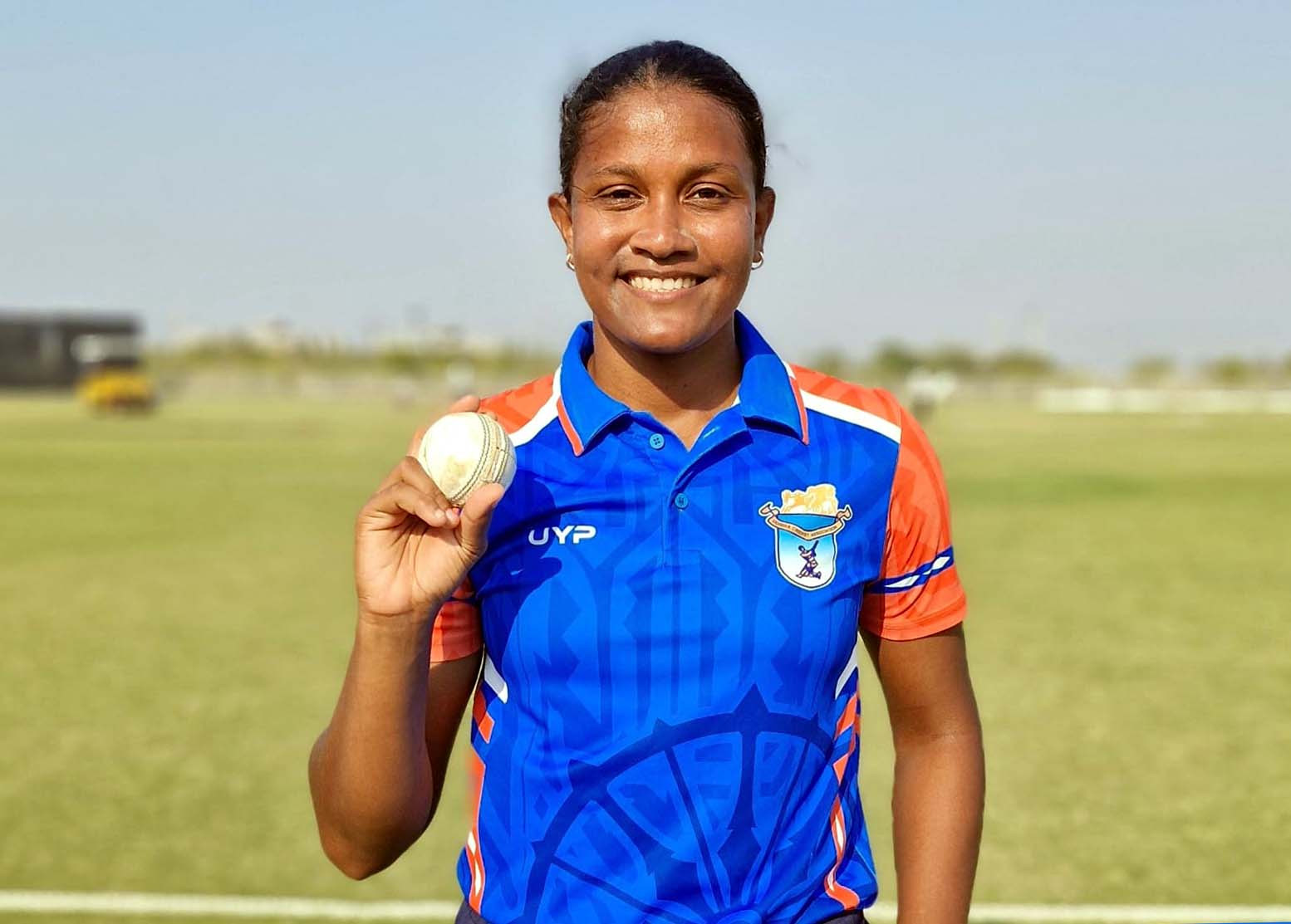 RIGHT: Odisha bowling Rima Laxmi Ekka poses after taking three wickets against Pondicherry during their Senior Womens One Day Trophy match in Rajkot on 14 February 2026.