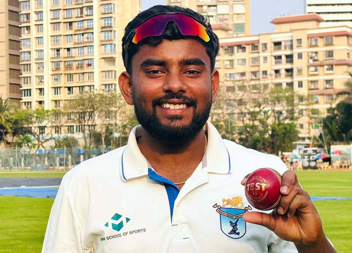RIGHT: Odisha bowler Badal Biswal jubilated after bagging five wickets in their CK Nayudu Trophy match against Mumbai in Mumbai on 15 February 2026.