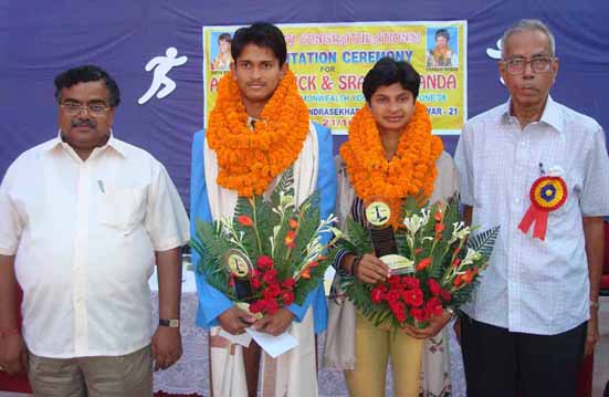 Up-coming sprinters Amiya Mallick and Shrabani Nanda were today felicitated by DAV Public School, Chandrasekharpur, for winning medals in the Commonwealth Youth Games at Pune earlier last week.